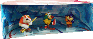 Das dieses Diorama aus der Schweiz kommt, ist deutlich zu sehen. Wenn man das Diorama von der Seite betrachtet wird klar, dass es ein Eishockey Puck darstellen soll. Das Diorama besteht aus zwei Hälften, die auseinander geschoben werden können. Im Inneren sind die Eishockeyspieler zu sehen. Sie stehen auf einem Eishockey Feld. Im Hintergrund ist eine antarktische Kulisse zu sehen. Komisch das dieses Diorama erst jetzt bekannt wird, vielleicht ist es sehr selten und Testware. Wer hat noch so ein Diorama und weiß mehr dazu? Bitte in den Newskommentar schreiben. Den Satz Eishockey Spieler haben wir gerade im Sonderangebot: [Zum umfangreichen Ü-Ei Shop auf Eierlei. de]