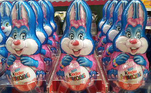 Der Aufsteller zeigt uns einen Aufsteller mit Kinderinos. In den Kinderino Eiern stecken Figuren von der Space Mission. Es gibt noch einen ähnlichen Kinderino mit Hasenohren und dem Slogan "Frohe Ostern". Auf dem unteren Bild ist die Frau von Harry Hase zu sehen. Sie beinhaltet ebenfalls eine Ü-Ei Kapsel, aber für Mädchen. Danke an den Eierlei User "Happy Hippo" für die News. Die Space Mission Figuren haben wir im Eierlei Shop gerade im super Sonderangebot: [Zum Eierlei online Shop].