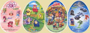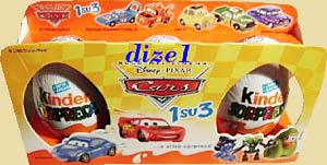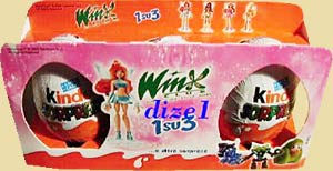In Italien gibt es einen Werbeflyer in Ü-Ei Form, der alle Serien von 2006 und 2007 zeigt. Interessant sind die neuen Serien wie die PIXIE Figuren. Das Bild ganz rechts zeigt eine Serie mit Super Helden. In dieser Auktion  werden alle Serien angezeigt. [Link zu der Auktion mit allen Werbeflyern]  Das Bild zeigt zwei Kinder Mix Häuschen. In jedem Kinder Mix ist ein Ü-Ei enthalten.   Danke an maurizio für die News. In Italien sind diese beiden etwas anderen 3er Packs erschienen. Laut Auktionsbeschreibung soll es sich hierbei um seltene Testware handeln. [Link zu dem WinX 3er Pack] [Link zum 3er Pack der Disney Cars]