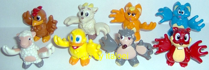In Belgien gibt es jetzt auch die Schlümpfe. Das Bild zeigt den Beipackzettel aus Belgien. Alle Informtaioinen zu dem deuschen Schlumpf Satz gibt es in diesem [Eierlei Bericht]. Quelle: [collectorman. nl] In England sind diese 8 Tierfiguren rausgekommen. Der Name der Serie ist "Spring Cuddles". Die übergroßen Hände können aus den Figuren gezogen werden. Gehalten werden die Hände mit einen Gummiband. Der Sinn ist es, dass die Figuren dann mit ihren Händen irgendwo angehägt werden können. Quelle [italoei. at] In Italien gibt es von WinX die "WINX LOVE & PET". Gemeint sind damit die kleinen Tierfiguren, die die WinX Mädels in den Händen halten. Das untere Bild zeigt die kleinen niedlichen Tierfiguren Quelle: [specialkit. it]
