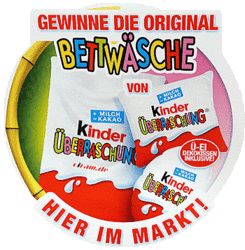Mit den neuen Ü-Eiern der Kung Fu Panda 3 Serie kommt auch ein neues Ferrero Gewinnspiel raus. Der Palettenanhänger wirbt für das Gewinnspiel. Dazu muss nur im Supermarkt eine Gewinnspielkarte ausgefüllt werden und in die Losbox damit. Zu der Bettwäsche gehört ein Ü-Ei Dekokissen.