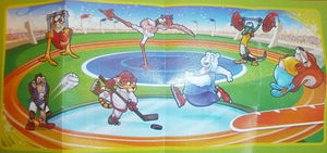 Auf dem Foto ist ein Werbeflyer der Monster Uni von beiden Seiten zu sehen. Den Flyer gibt es in Tschechien. Das Format ist DIN A5. Quelle und zu bekommen: [In dieser eBay Auktion] Aus Ägypten kommt dieser neutrale Beipackzettel der Sporty Animals. Figuren und Puzzle der Serie können wir im Shop anbieten. [Ü-Eier Shop]