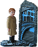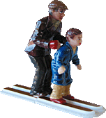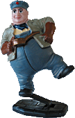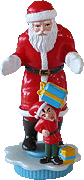 Vorstellen möchten wir die 8 Figuren der Serie der Polarexpress, die auf dem BPZ zu sehen sind. Das Diorama beinhaltet ebenfalls diese 8 Figuren. Es gibt Werbeblätter vom Polarexpress, wo von 11 Sammelfiguren in jedem 7. Ei die Rede ist. Unserer Meinung nach ist die Lock, der Fahrkartenentwerter und ein kleines Plastikpuzzle, wo es noch zwei unterschiedliche von gibt, keine Figur, obwohl diese Sachen alle den BPZ haben, wo auf der Vorderseite die 8 Serienfiguren drauf sind. Aber das kann jeder Sammler für sich entscheiden. Zur Serie bleibt vorweg zu sagen, dass es alles andere als die klassische Ü-Ei Serie ist, da die Figuren teilweise spielzeugartig sind. Auslieferungsstart ist der 2. 11. 04. Die erste Figur ist der Schaffner mit Polarexpress Tür. Die Tür kann man aufmachen, wo dann ein Aufkleber von dem Jungen platziert wird. Insgesamt besteht die Figur aus 7 Teilen. Die insgesamte Höhe ist etwas über 7 cm und damit unpassend für den Standard Ü-Ei Setzkasten. Der Kohlenschüpper wird aus drei Teilen zusammengebaut. Die Bauanleitungen befinden sich immer auf der entsprechenden BPZ Rückseite. Der Maschinist des Polarexpress steht auf einem Tritt mit Lasche nach oben. Was das soll, ist aber unklar. Die Figur selbst wird aus drei Teilen zusammengesteckt, also sind es mit Tritt 4 Teile. Der Mann mit Ski und Junge vorne drauf besteht aus 5 Teilen. Der Weihnachtsmann steht auf einem Rondell, wo sich der helle Teil drehen lässt, so dass der Weihnachtsmann das Geschenk von den Elfe abnehmen kann. Der Weihnachtsmann besteht aus 4 Teilen. Ja, jetzt wird\'s schwer! Das Ding, wo ein Elfe drauf steht, ist mit Batterie. An der grauen Stange kann ein roter Lichteffekt aktiviert werden und dann sieht es so aus, als wenn die Elfe ein Rockstar ist, der auf einer Bühne steht. Irgendwie hat die Figur Ähnlichkeit mit Mike Jagger. Der Junge und das Mädchen, die vor dieser Tür stehen, bestehen je aus 4 Teilen.