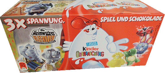 Dieses 3er Pack der Heimwerker gibt es jetzt in der Schweiz. Aktueller Preis ist 3,55 CHF. Enthalten war in diesem 3er Pack eine Figur der Heimwerker, obwohl es dafür keine Garantie gibt. Im zweiten Ei war Spielzeug und im dritten ein Puzzle der Looney Tunes. Auf dem BPZ ist oben rechts ein Elefanten Code, der auf 2magic. com eingelöst werden kann. Anscheinend so was wie die Magic Codes von früher. [Live Suche nach den Heimwerkern auf eBay starten] Danke an Andreas aus der Schweiz für die News