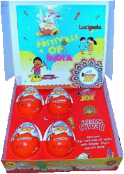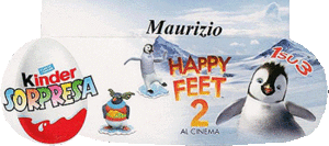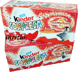 Zum indischen Diwali Fest gibt es ein umfangreiches Kinder Joy Sortiment. Links ist ein 3er Pack Kinder Joy Eier zu sehen. Die Verpackung ist eine ovale Plastiktüte im Eiermann Motiv. Rechts ist ein buntes 4er Pack der Kinder Joy Eier abgebildet. Weiterhin gibt es noch 2er, 3er und 6er Pack zum Fest der Lichter in Indien. Quelle Lucignola In den 3er Packs der Happy Feet 2 Figuren aus Italien wird eine Figur garantiert. In England gibt es ebenfalls die Happy Feet 2 Serie. Hier die ersten Auktion der [HAPPY FEET 2 Figuren]. Im Dezember gibt es den Film zum zweiten Teil. [Deutscher Trailer zum Kinofilm]. Danke an Maurizio für die News.