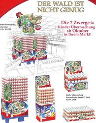 Dieses Werbeblatt zeigt uns schon alle Aufsteller und Displays, wie uns die neue Serie beim Kauf begegnen wird. Die Hauptfigur ist eindeutig Otto, umgeben von Cosma und Nina Hagen. Ein Palettenanhänger ist leider nicht zu erkennen, nur die Kantenschoner. Der Sockel vom Aufsteller unten in der Mitte zeigt (kaum zu glauben aber war) die Dracool Figur vom Monsterhotel und die Blume von Funny Castle.