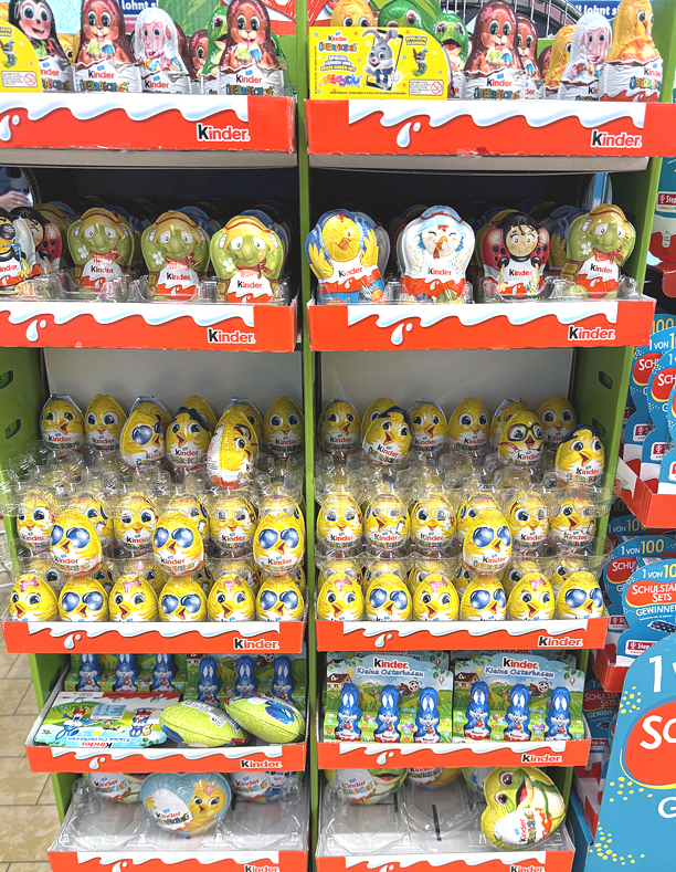 Die Supermärkte sind mit Überraschungsei Osterware bestückt.