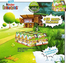 So werden uns die "guten Schafe - Wilde Schafe - Chaos auf der Weide" im August entgegentreten. Das erste Werbeblatt zeigt ein Großaufsteller mit 864 Ü-Eiern sowie ein 72er Thekendisplay. Auf dem zweiten Werbeblatt sind die 6er Packs zu sehen, wo zwei Figuren der Serie garantiert werden. Des Weiteren gibt es noch die 288er-Palette. Auslieferungsstart ist der 11. August 2008 [Live Suche auf eBay nach dem Diorama starten]