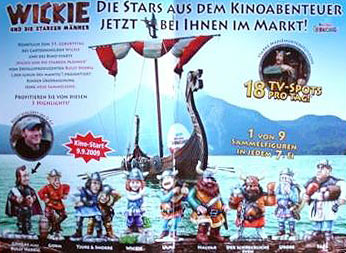 In der Gerüchteküche wurde schon drüber spekuliert, dass die August Serie Wickie sein könnte. Dies sind die ersten Bilder aus einer ebay Auktion die beweisen, dass es "Wickie und die starken Männer" als Ü-Ei Figuren geben wird. Auslieferungsstart ist laut den Werbeblättern der 10. August. Das Werbeblatt links zeigt 4 große Aufsteller von Wickie. Es werden aber nicht die Comic Figuren aus der TV Serie in den Ü-Eiern sein, sondern die aus dem kommenden Film. Wir denken, so wie es bei den 7 Zwergen der Fall war. Dieses zweite Werbeblatt bestätigt, dass es die Charaktere aus dem Film sind. Insgesamt besteht der Satz aus 9 Figuren. Auf dem Werbeblatt wird auf 18 TV Spots pro Tag hingewiesen. Die Namen der Figuren sind die gleichen wie aus dem Comic, sprich ganz rechts steht Faxe. Dieses Werbeblatt zeigt ein 6er Pack von Wickie. Wenn wir es richtig deuten, werden 2 Wickie Figuren pro 6er Pack garantiert. Quelle der Werbeblätter sind diese eBay Auktionen: Artikelnummer: 380126835325 Artikelnummer: 380126835885 Artikelnummer: 380126835700