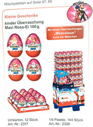 Das Ferrero Werbeblatt zeigt das Miraculous Logo oben rechts. Wer die Serie noch gar nicht kennt, kann sich einen Überblick bei [diesen eBay Auktionen machen].