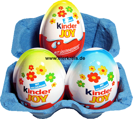 Zu Ostern gibt es wieder diese originellen 2er Pack mit Kinder JOY Eiern. Das zweier Pack gibt es in den Farben blau, gelb und grün. Das Kinder JOY Ei ist ebenfalls in den drei Farben zu bekommen, umgeben von Blumen. Die neue Osterserie "Die schrillen Musikantengrillen" sind anscheinend nicht in den Eiern.