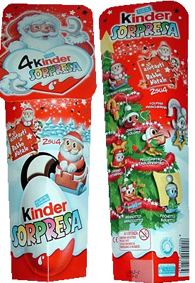 In der Schweiz ist dieses 3er Pack rausgekommen. Gesichtet wurde es bei Migros für 3,00 CHF. Enthalten ist anscheinend aktuelles Spielzeug und die Natoons. Danke an Andreas Das Bild zeigt uns das aktuelle 4er Pack aus Italien von beiden Seiten. Garantiert werden 2 Figuren der "Fleißigen Weihnachtshelfer". Den Satz und das schöne Puzzle der Serie sind im [Shop] erhältlich. In Serbien gibt es dieses weihnachtliche 3er Pack.
