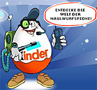 Es gibt nicht nur den extra Mission Maulwurf und Funny Castly Magic Code, sondern noch die entsprechenden Spiele zur Serie. Ein paar Spiele haben wir für Euch getestet. Zuerst erscheint bei der Mission Maulwurf ein Intro in James Bond Manier. Danach kann man ohne Einlösen des MC über eine Wiese lenken. Auf der Wiese sind Maulwürfe und allerlei Gegenstände. Durch Anklicken der Maulwürfe kommt eine Vorstellung der Figur, genau so wie bei den Mission Maulwurf Fahrzeugen. Wenn man einen MC eingelöst hat, kann man einem Spiel beitreten. Welche Spiel dann kommt, wird per Zufall ausgewählt. Überwiegend sind es Mission Maulwurf Spiele, aber es kann auch eine Spiel der Funny Castly oder des neuen Spielzeugs sein. Beim Spielzeug sind z. B. die smarts dabei. Besonders ist noch zu erwähnen, dass die Spiele diesmal runtergeladen werden müssen. Von Didi Durchblick gibt es ein Spiel, wobei man durch sein Fernrohr im Garten schaut und dann alles Auffällige aufnehmen muss. Diese Aufnahmen werden dann dem Team im Kino präsentiert (nicht so toll). Besser hat uns das Spiel gefallen, wo Mike Mission gegen Dr. Mole spielt. Das Spiel ist wie ein Flipper aufgebaut und bringt "Spaß und Spannung". So, alles sollte aber nicht verraten werden, sonst fehlt am Ende noch die Überraschung. [Link zu www. magic-kinder. com]