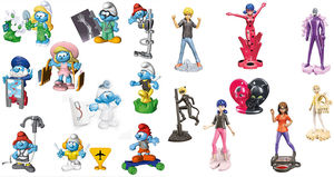 Auf dem Bild sind die beiden neuen Hauptfigurensätze von den Schlümpfen und den Miraculous zu sehen.