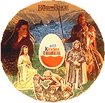 Die diesjährige Sonderpackung zu Herr der Ringe III "Die Rückkehr des Königs" kommt in Form einer Ringpackung. Die Sonderverpackung enthält 7 Ü-Ei Figuren mit zwei exklusiven Figuren. Die beiden Figuren werden Gandalf und Schattenfell sein, wie das Cover verrät. Weiterhin beinhaltet die Sonderverpackung ein zauberhaftes Puzzle im Deckel. Drei Puzzlestücke sind rechts auf der Verpackung zu sehen. Das ganze Puzzle ist rechts abgebildet. Innenansicht des Deckels Maßstab 1:2 Der Auslieferungsstart der Sonderverpackung wird vorrausichtlich zwei Wochen nach dem Serienstart sein. Der Stückpreis für die Sonderverpackung pendelt sich schätzungsweise bei 4 bis 6 Euro ein! Die erste Sonderverpackung und alle bis jetzt erschienenen Herr der Ringe Figuren gibt es in unserem Shop [Zum Ü-Ei Shop auf Eierlei. de]