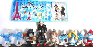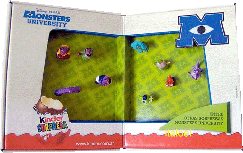 In unserem Nachbarland Österreich gibt es schon die Schlümpfe 2 (THE SMURF 2). Das Bild zeigt die neun Figuren der Serie. Oben ist die Vorderseite des Beipackzettels zu sehen mit Eifelturm. [Zu bekommen in dieser Auktion] Von der Monster Uni gibt es dieses Buchdiorama. Das linke Bild zeigt uns die Vorderseite. Beim Aufklappen sieht man die Figuren in der Draufsicht. Die Grünfläche soll wohl den Campusrasen darstellen. Quelle: [Diese eBay Auktion].