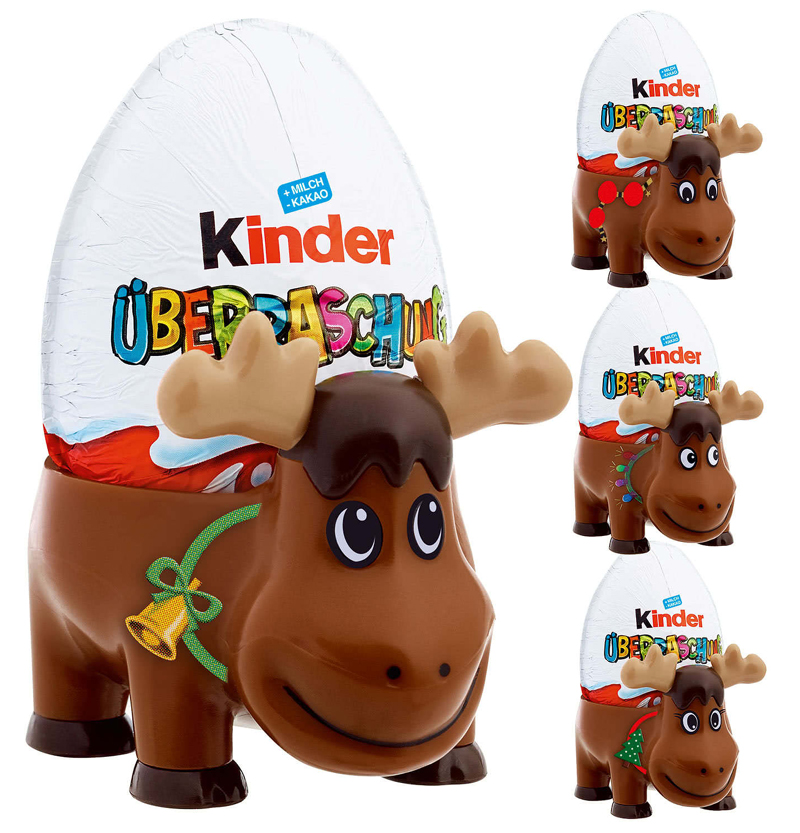 Insgesamt gibt es das Rentier in vier unterschiedlichen Motiven, wie auf dem Bild zu sehen. Preis pro Ü-Ei mit Rentier ist etwas unter 3 Euro.
