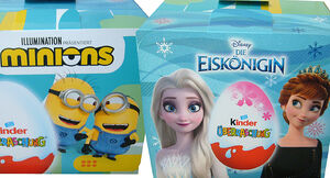 Die Figuren der Minions sowie der Eiskönigin sind um Deckel Inneren des Dioramas verteilt.