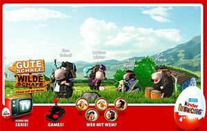 Auf kinderueberraschung. de ist der online Auftritt der Serie Gute Schafe - Wilde Schafe gestartet. Es werden zwei Werbespots präsentiert, der GSWS Spot ist nicht dabei. Außerdem zwei Spiele, einmal ein Schaf Memory und ein jump and run Spiel. Unter "Wer mit wem" wird dargestellt, wer mit wem zusammenhängt. Der ganze Auftritt wird von idyllischen Geräuschen begleitet. [www. kinderueberraschung. de] [Im Eierlei Shop sind auch schon die Schafe los]