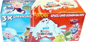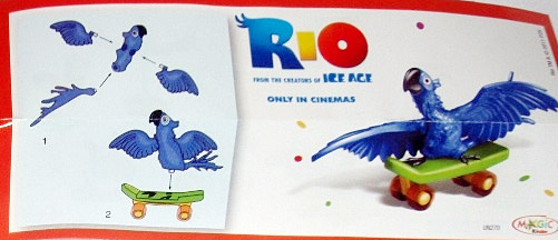 In Europa wird es die neue Serie RIO passend zum Film geben. Sie besteht aus acht Vögeln. Die Serie erscheint in den Kinder Joy Eiern (Sommerei). Der Film ist von den Machern von ICE AGE. Start des Filmes ist am 7. 4. 2011. Der Trailer ist vielversprechend: [Trailer zum Film RIO auf YouTube] Die Bilder zeigen uns zwei Figuren aus dem Film und den BPZ zur Serie. Der blaue Papagei rechts hat den Namen "Blue". Dieser Schulbus ist ein 3er Pack von Kinder Joy. Herausgekommen ist es in Algerien. In den Kinder Joy Eiern ist Spielzeug aus der 2010er Kollektion. In Österreich ist jetzt erst dieses 3er Pack vom Küchenduell rausgekommen. [Alle Figuren zur Serie günstig im Eierlei Shop]