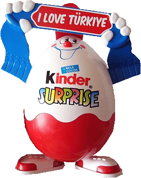 Die Eiermänner sind los! Ostern 2010 kommt näher und die Eiermänner sind in immer mehr Ländern anzutreffen. Bei dem Eiermann handelt es sich um eine Sonderverpackung, die 7 Ü-Eier beinhaltet. Der Eiermann rechts ist aus Spanien. Auf dem Schal steht "HAPPY EASTER", genau wie der Eiermann direkt unter uns. Hier ist nur der Schriftzug anders. Aus welchem Land der Eiermann rechts unten ist verrät der Schriftzug "I LOVE TÜRKIYE". Von dem Eiermann gibt es aus vergangenen Jahren schon sehr viele Ausführungen. Live Suche auf eBay nach Eiermann