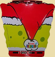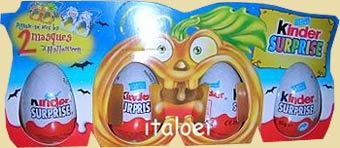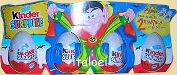 Diese Sonderverpackung ist in Frankreich rausgekommen. Der Metallkoffer hat oben einen Tragegriff und es befinden sich 6 Ü-Eier in dem Koffer. Zu bekommen ist der freundliche SpongeBob Koffer in dieser Auktion für 12 Euro sofort kaufen. [Zu der Auktion] Diese beiden 4er Packs kommen ebenfalls aus Frankreich. Die gruselige Verpackung zeigt, dass die 4er Packs für Halloween gedacht sind.