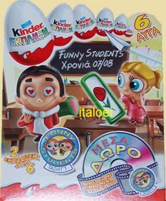 Dieses 6er Pack der Funny Students gibt es in Griechenland. 2 Figuren werden pro 6er Pack garantiert. In dem 6er Pack ist eine VCD. Aus der Schweiz kommen dieses beiden 6er Packs. In den 6er Packs sind die Weihnachtswichtel. Figurengarantie der Wichtel sind 2 Stück.