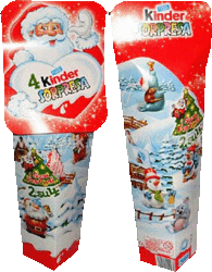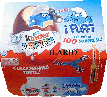 Dieses geschlossene Thekendisplay gibt es in Italien. Wie dem Bild unschwer zu entnehmen ist, dreht sich alles um die neue tolle Schlumpf Serie "i Puffi". Weiter wird mit 100 neuen Spielzeugen geworben. Ein Serienbild der neuen Figuren mit Schlumpfine, Babyschlumpf und Gargamel gibt es im Shop zu sehen [Direkter Link zum i Puffi Satz]. In Ungarn gibt es eine neue Serie der Funny Students. Diesmal gibt es sogar 4 Puzzleecken von der Serie. In Italien soll es in Kürze diese Plüschserie "ABBRACCIOSI" geben. Der Satz besteht aus 6 niedlichen Tieren. Die Plüschfiguren haben einen Klettverschluss zum Anhängen. In Italien gibt es die Kling-Glöckchenbande in diesem 2er Pack und rechts in der 4er Packung. In Italien sind weitere schöne Weihnachtssachen rausgekommen wie ein Rucksack, zwei schöne Schokobonverpackungen und ein Malset. Bildmaterial und mehr Informationen gibt es in [diesen eBay Auktionen ].