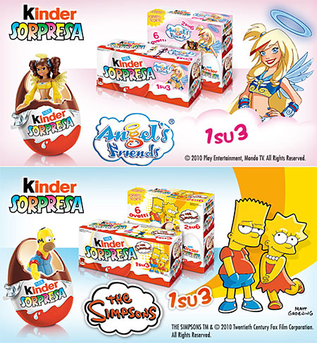 Das Bild zeigt uns zwei Werbeblätter aus Italien. Auf dem oberen Werbeblatt ist die kommende Herbstserie "Angel\'s Frieds" zu sehen. Zur Serie gibt es ein 3er und 6er Pack. Ebenfalls im Herbst wird es eine neue Serie der Simpsons geben. Pro 3er Pack ist eine Figur der Serie garantiert. Die ersten Sätze der Simpsons werden schon bei eBay angeboten: [eBay Auktion]