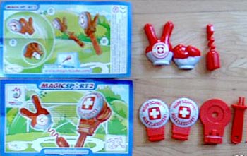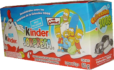 In Mexiko gibt es die Simpsons in diesem 3er Pack und im 1er Pack. Im 3er Pack wird eine Figur garantiert. Eine Figur der Babyfeuerwehr ist auf dem Deckel des 3er Packs zu sehen. In Mexiko läuft wie in Deutschland eine Punkte Sammelaktion. Mehr dazu auf der mexikanischen Ferrero Seite www. ferrero. com. mx Danke an Lothar S. für die News Das Bild links zeigt ein Thekendisplay der Merendero Eier. Enthalten sind die Simpsons. Der BPZ rechts zeigt ein 6-teiliges Spielzeug Set der Simpsons Danke an Francesca In der Schweiz gibt es dieses zweiteilige Fanset der Magic Sport. Das Besondere ist, dass nun der Aufdruck auf der Klatsche und dem Stiftaufsatz auch anders ist, als wie es beim 3teiligen Fanset war. Quelle: [Diese eBay Auktion]