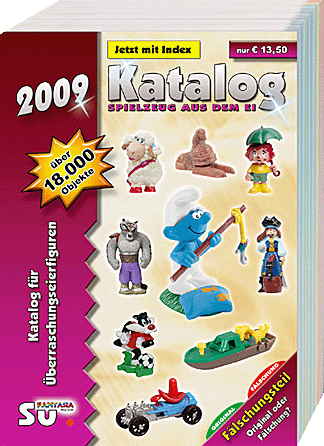 Im neuen SU Katalog stecken 500 neue Objekte. Damit beinhaltet der "Spielzeug aus dem Ei 2009 Katalog" sagenhafte 1504 Seiten und ist der umfangreichste Ü-Ei Katalog aller Zeiten. Das kompakte, völlig überarbeitete Nachschlagewerk rund um Ferrero`s beliebte Überraschungseier beinhaltet: Figuren, Beipackzettel, Spielzeug, Maxi-Eier-Inhalte, großer Ratgeber zum Thema "Fälschungen" usw. Natürlich auch schon mit den brandaktuellen Serien "Die Schlümpfe", "Kung Fu Panda", Gute Schafe - Wilde Schafe" und vieles mehr. Erscheinungstermin ist der 20. August. Der Katalog kann ab sofort vorbestellt werden [Zum Shop]!