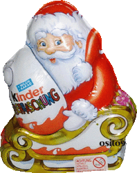 Dieser Weihnachtsmann auf dem goldenen Schlitten besteht aus Ü-Ei Schokolade. Im Weihnachtsmann befindet sich noch ein Ü-Ei oder besser geschrieben eine Ü-Ei Kapsel. Ein sehr zutreffendes Weihnachtsgeschenk für den Ü-Ei Sammler. Wie so oft handelt es sich bei den schönen Sachen erst mal um Testware. Zu bekommen ist die Testware zum Festpreis in [dieser eBay Auktion].