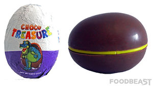 Wie die meisten Ü-Ei Sammler wissen, ist in den USA das Ü-Ei verboten. Grund ist ein 75 Jahre altes Gesetz welches verbietet, in Lebensmittel Spielzeug zu verstecken. Zum Schutz der Amerikaner, damit nichts verschluckt werden kann, was man nicht sieht. Seit Frühjahr 2013 ist nun die Süßigkeit „Choco Treasure“ auf dem Markt, welche den Überraschungseiern sehr ähnelt und erlaubt ist. Die Schokohälften sind durch Plastik getrennt. Eine einfache und gute Idee. Hier noch unglaubwürdige Zahlen: Pro Jahr werden 60. 000 Ü-Eier vom amerikanischen Zoll konfisziert. Pro Ü-Ei soll es eine Strafe von bis zu 2500 Dollar geben. Tipp: Am besten Kinder Joy Eier mitnehmen, die in der USA legal sein sollten und genau so lecker sind wie das Ü-Ei :-)