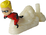 Mit diesem Bericht möchten wir Euch die Figuren der kommenden Serie "Die Unglaublichen" vorstellen. Als erstes die Hauptperson Mr. Incredible. Er besteht aus zwei Teilen und macht einen recht wuchtigen Eindruck. Mrs. Incredible besteht zwar aus einem Stück, wird aber auf einen Tritt gesteckt. Violetta besteht aus drei Teilen. Sie selbst ist wie im Film von ihrem Schutzschild umgeben, so dass die zierliche Figur nicht kaputt gehen kann. Syndrom ist eine Steckfigur, wo der Umhang noch zusätzlich angesteckt wird. Frozone der super coole besteht aus einem Stück. Flash ist eine funktionsfähige Figur, wenn der weiße Stift am Ende der Figur gedruckt wird, flitzt die Figur durch einen Federantrieb nach vorne. Edna ist eine einteilige Figur. Kein Wunder, laut BPZ ist sie auch nur ein laufender Meter. Jack Jack das Baby der Superhelden ist von einem gruseligen Wesen umgeben, wo das obere Teil abnehmbar ist. Die Fahrzeuge der Serie bestehen aus sehr vielen Teilen. Die Bauanleitung der Fahrzeuge ist auf der Rückseite der BPZ abgebildet. Der Auslieferungsstart der Unglaublichen ist der 3. Januar. Trotz Vorurteile gefallen uns im Nachhinein die Figuren ganz gut und wir denken auf Grund des Films werden auch viele nicht Ü-Ei Sammler die Unglaublichen sammeln. Wer diese Bilder einem Freund zeigen möchte, kann am Besten die [News empfehlen] oder die [Druckversion] verwenden!