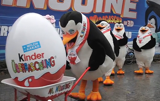 Mit einem RIESEN Ü-Ei in der Schubkarre sind die Pinguine und Hello Kitty auf Deutschlandtour. Jetzt gibt es ein offizielles Video, wie die fünf Figuren in Berlin unterwegs sind. Mehr Informationen und Bildmaterial auf dem offiziellen Kinderüberraschungsei Facebook Auftritt. [Facebook/Kinderue. . ]. Figuren und Sätze dazu jetzt im [Eierlei-Shop. de]!