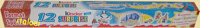 Aus Frankreich kommt dieses 6er Pack der Grillen "LES GRILLONS CHANTEURS". Es werden 2 Figuren pro 6er Pack garantiert.   Quelle [italoei. at] Des Weiteren gibt es noch ein 12er Pack in Stangenformat der Magischen Schulstunde "MAGIC LESSONS". Anscheinend werden in dem 12er Pack 4 Figuren garantiert. Das Bild zeigt zwei unterschiedliche 4er Packs. Die 4er Packs kommen aus Griechenland. In Italien gibt es bis auf den Text genau die gleichen 4er Packs.   [Quelle diese eBay Auktion]