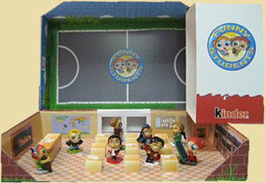 Von den Funny Students taucht immer mehr Promomaterial auf, welches wir Euch vorstellen möchten. Dieses Klassenzimmer ist das Diorama der Funny Students. In dem Deckel ist ein Sportplatz. Erschienen ist es in Tschechien. Quelle: [Diese eBay Auktion] In Ungarn gibt es dieses 6er Pack als Metallkoffer der Funny Students. Der Koffer ist in zwei Farben erschienen, Blau und Orange. Im Hauptteil des Koffers befinden sich die 6 Ü-Eier. Auf dem Koffer kann noch ein separater Deckel aufgeklappt werden (siehe Bild rechts). Es solle einen PC oder Notebook andeuten. Quelle :[Diese eBay Auktion] Ebenfalls aus Ungarn kommt dieses 3er Pack der Funny Students. Es wir eine Figur garantiert.