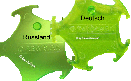Der Eierlei Moderator "mazacane" hat die deutsche Tecna und die russische Tecna unter die Lupe genommen. Fazit ist, dass es drei Unterscheidungsmerkmale gibt. Als erstes ist die russische Tecna etwas heller als die deutsche, was aber schwer zu sehen ist, wenn kein direkter Vergleich vorliegt. Zweitens, der Abrisspunkt am Hinterkopf ist bei der deutschen Figur ausgeprägter. Und drittens ist der Tritt, wie auf dem Bild zu sehen, mit einer anderen Kennung versehen. Unter dem russischen Tritt steht "© RBW S. P. A" und unter dem deutschen Tritt steht "© Rainbow Srl". Alle Informationen und Bildmaterial auf www. mazacane. de
