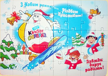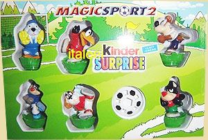 Die Werbetafel links von den Magic Sport 2 Figuren wurde in Frankreich gesichtet. Diese "grüne" Verpackung scheint eine Art Diorama zu sein. Enthalten sind nur 6 Figuren. In der Ukraine gibt es diese Werbepuzzle. Das Puzzle besteht aus 40 Teilen und zeigt eine weihnachtliches Bild. Die Umverpackung des Puzzles wirbt für die Magic Sport 2 Figuren. Dieses 3er Pack bekommt man derzeit in Österreich. Enthalten ist Spielzeug aus der 2007 Kollektion. In Polen gibt es von den Magic Sport 2 diese beiden 4er Packs. Ab sofort können wir im Shop alle Einzelfiguren von Magic Sport 2 anbieten und Sätze! [Direkt zum Eierlei Shop]