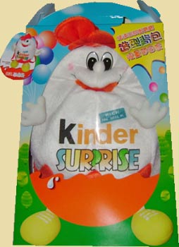 Aus Frankreich kommt dieses Diorama der Magic Lessons. Es beinhaltet 4 Figuren und 4 Spielzeuge der Serie. Quelle: [Diese eBay Auktion] Der Asterix Helm ist in einer Werbeaktion von Kinder & Nutella in Spanien auf den Markt gekommen. Quelle: [Diese eBay Auktion] Dieses Diorama aus Frankreich beinhaltet gleich vier Serien. Gezeigt werden Ü-Ei Inhalte von 2006 und 2007. Das Bild rechts zeigt einen Eiermann Rucksack, der noch im Karton ist. Der Rucksack ist aus einem Fliesstoff. Größe des Eiermannes ca. 33 cm x 22 cm x 10cm! [Zu bekommen in dieser Auktion]