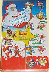 Diesen Adventskalender von Asterix als Wikinger gibt es in Frankreich. Quelle: [honeymaggi] Rechts sind zwei gruselige 3er Packs aus Australien. Enthalten sind Figuren vom Monsterhotel. Quelle: [Italoei. at] Diese beiden 4er Packs sind in der Schweiz zu bekommen. Enthalten sind die Rentiere. Quelle: [ue-ei-portal. de] Diesen Eiermannrucksack gab es in Israel bei einem Gewinnspiel. Quelle: [Ssofiakinder]