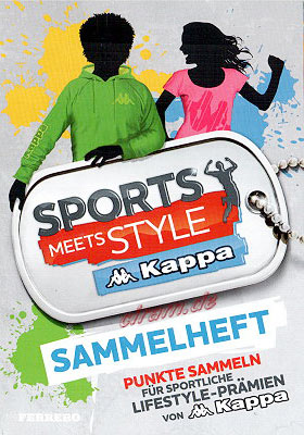 Vor genau 6 Monaten haben wir die "Sport meets Style" Sammelaktion angekündigt. Jetzt ist die Zeit fürs Punktesammeln schon wieder fast um. Bis Ende des Monats ist Einsendeschluss. Wir möchten nicht auf den aller letzten Drücker darauf hinweisen, so kann jeder noch versuchen, in den kommenden zwei Wochen die angezielten Punkte für die Prämie zu bekommen. Allerdings sind schon auf mehreren Ferrero Produkten keine Sammelpunkte mehr drauf. Alternativ werden auf eBay Sammelpunkte angeboten Live Suche nach Sammelpunkten Übersicht der Prämien: 45 Punkte ein CAP 60 Punkte ein Basketball 80 Punkte ein DAMEN T-Shirt 90 Punkte ein Polo Shirt 115 Punkte ein Rucksack 130 Punkte eine Umhängetasche 140 Punkte ein Hoodie 150 Punkte ein MP3-Player