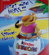 Von den Strandnasen wird es das 6er Pack auf dem linken Bild geben. Das 6er Pack ist ein Tourbus mit dem die Strandnasen fahren und der Eiermann sitzt oben auf dem Bus. Das rechte Bild zeigt, dass die Figuren sich verfärben. Der Slogan lautet "Jetzt wird\'s HEISS" Quelle: [Diese eBay Auktion]