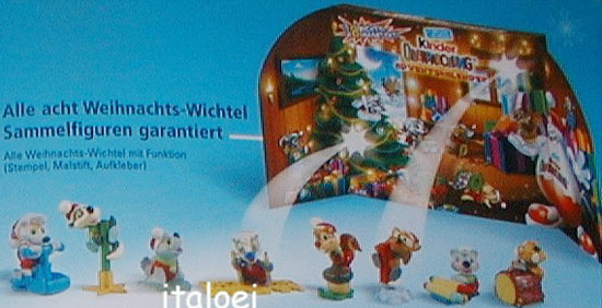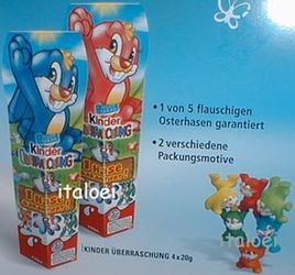 Die Bilder kommen aus einer neuen Ferrero Vertreter Mappe. Das erste Bild zeigt 8 Figuren einer Nagetierserie. Die Tiere sind funktionsfähig wie z. B. Stempel, Malstift und Aufkleber. Wir gehen davon aus, dass der Satz unter anderem in dem Adventkalender erscheinen wird. Diese beiden 4er Packs kommen zu Ostern 2008. In den 4er Pack wird ein "flauschiger Osterhase" garantiert. Laut Beschreibung soll der Osterhasensatz aus 5 Figuren bestehen, das Bild unten rechts zeigt aber 6 Figuren. Vielleicht gibt es die Osterhasen in unterschiedlichen Farben.