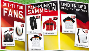 Bevor es zu spät ist möchten wir noch darauf hinweisen, dass die tolle Sammelpunkte Aktion von Ferrero sich dem Ende nähert. Wer seine Sammelpunkte bis zur angestrebten Prämie nicht innerhalb der nächsten zwei Wochen voll bekommt, sollte sein Glück auf eBay probieren, dort werden die Sammelpunkte teilweise günstig versteigert: [Live Suche auf eBay nach den Sammelpunkten starten]. Als Prämien können diese original DFB Fan - Artikel ausgewählt werden. Bis zum 29. Juni muss das Sammelheft an diese Anschrift eingesendet werden: FERRERO OUTFIT FOR FANS EM 2008 POSTFACH 56 20 33356 RHEDA-WIEDENBRÜCK