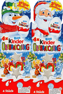 In der Regel werden die Weihnachtsleckereien ab Oktober angeboten. Das lukrative Weihnachtsgeschäft sorgt dafür, dass immer früher die ersten Weihnachtswaren zu bekommen sind. Das Bild zeigt uns zwei Ü-Ei 4er Packs, die es schon bei Kaufland gibt. Pro 4er Pack wird eine Figur aus der Serie "Weihnachts-Schneeball-Schlacht" garantiert. Der Preis pro 4er Pack liegt um die 2 Euro.