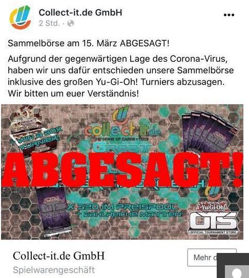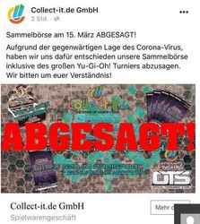 Aufgrund der gegenwärtigen Lage des Corona-Virus hat der Veranstalter der größten Ü-Ei Börse der Welt den nächsten Termin abgesagt.