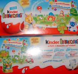 Aus Österreich kommt brand aktuell dieses 3er Pack. Die Verpackung zeigt "Kunterbunte Glücksbringer". Der Satz besteht aus 8 Figuren. Auf der Vorderseite sind vier Figuren der Serie zu sehen und auf der Rückseite zwei Figuren. Die Figuren sind zum Anhängen. Wir können uns gut vorstellen, dass diese Figuren zu Ostern auch in Deutschland in Erscheinung treten. "Die anhängliche Osterbande" würde dann erst 2010 in Deutschland erscheinen. Na ja, warten wir es ab. Danke für die News an Peter S.