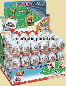 In Italien kommen wie in Deutschland die MagicSport Figuren. Parallel dazu gibt es die beliebten WinX Puppen als Ü-Eier Figuren. Mit den WinX Figuren hat Italien als erstes eine tolle neue Serie in den Ü-Eiern. Zu den beiden Serien wird es ein 3er und 6er Pack geben. Quelle: [www. italoei. at] In Luxemburg gibt ein 6er Pack zu de MagicSport Serie. Das 6er Pack besteht aus zwei dreier Packs und einer VCD. Die VCD auf der Verpackung zeigt von einer Seite die Baby Feuerwehr und von der anderen Seite die MagicSport Figuren. Hier noch ein Bild von dem CD Cover, wo die MagicSport Figuren aktiv am Spielen sind. Quelle: [Forum Mary Line] Dieses 72er Thekendisplay der Magic Sports gibt es in Ungarn. Zu erkennen sind auf dem Display die Babyfeuerwehr und die Piratellies. Quelle: [eiertruhe-portal. de]
