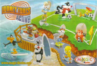 Das Bild zeigt einen Ausschnitt von der brasilianischen Homepage [kinderovo. com. br]. Die Homepage ist sehr gut gestaltet und für jeden Ü-Ei Sammler, der sich für ausländische Figuren interessiert. Auf der argentinischen Homepage [kinder. com. ar] sind sehr viele Optionen zum Anschauen, wie z. B. alle TV Spots, die es in dem Land über Ü-Eier gab. In Belgien sind die Looney Tunes erschienen. Der Satz besteht aber nur aus 9 Figuren, im Gegensatz zu dem deutschen Satz fehlt Wile E. Coyote. Alle Figuren zur Serie jetzt im Eierlei Ü-Ei Shop: [Shop] [Bugs Bunny] [Wühlkiste] [Sonderangebote].